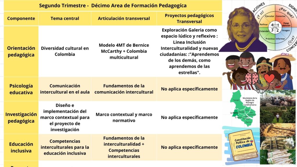 Al finalizar décimo grado, se espera que los estudiantes desarrollen competencias investigativas a través de la formulación y estructuración de un proyecto de investigación pedagógica articulado con las líneas institucionales. Asimismo, implementarán secuencias didácticas innovadoras vinculadas a los proyectos de área, documentando sistemáticamente sus experiencias pedagógicas. También fortalecerán sus capacidades para el diseño metodológico, la recolección de información y el análisis del contexto educativo, construyendo las bases teóricas y metodológicas de su investigación según los criterios establecidos en la lista de verificación institucional.
