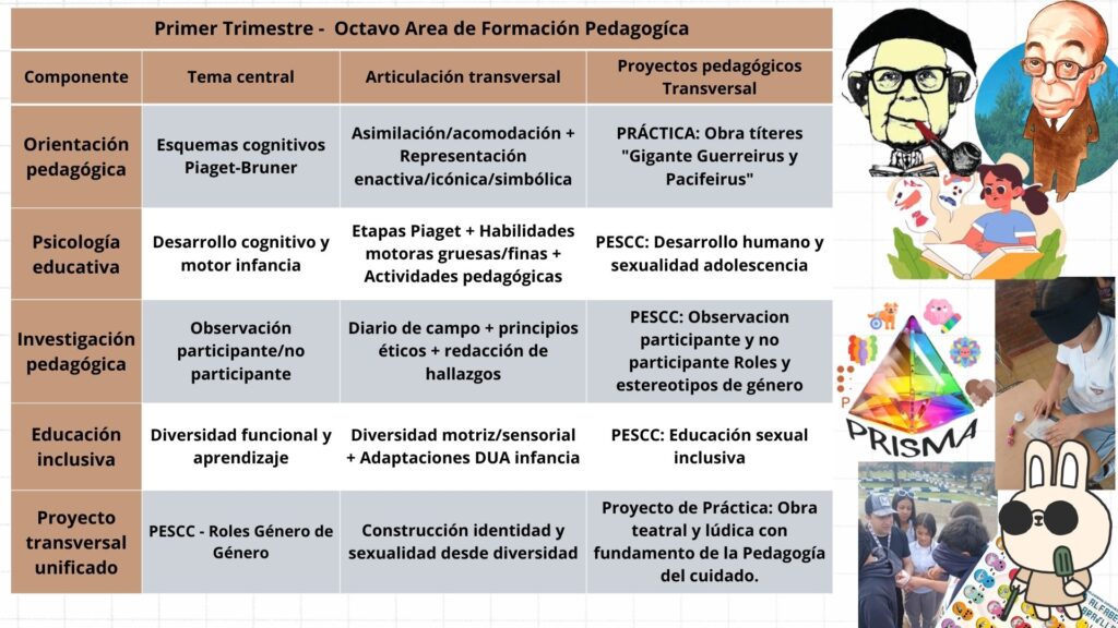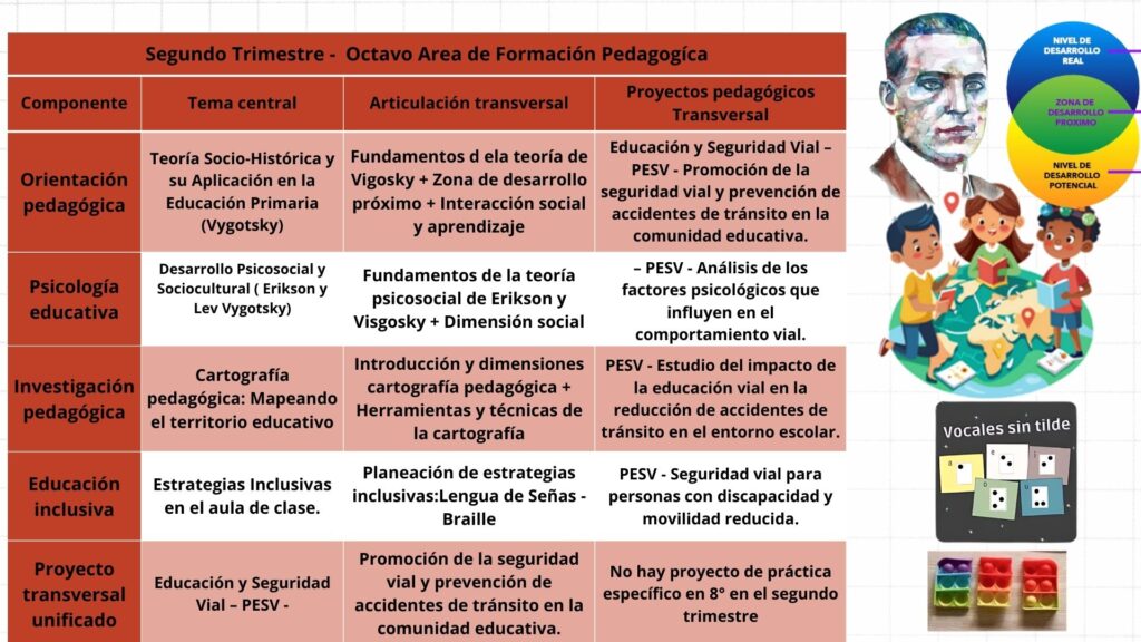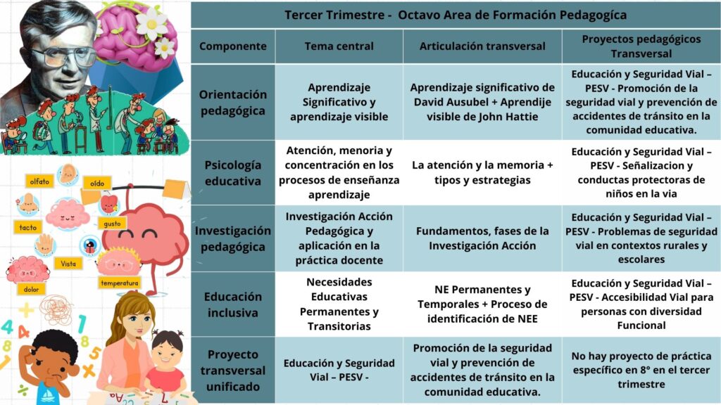 Al finalizar octavo grado, se espera que los estudiantes planifiquen e implementen secuencias didácticas estructuradas fundamentadas en principios de evaluación formativa y diferenciación pedagógica. Asimismo, desarrollarán propuestas de investigación-acción que incorporen elementos ecosóficos y tecnopedagógicos, promoviendo la sistematización de experiencias educativas. También diseñarán intervenciones pedagógicas que integren estrategias interculturales y apoyo pedagógico, favoreciendo el desarrollo integral y la participación efectiva de todos los estudiantes.